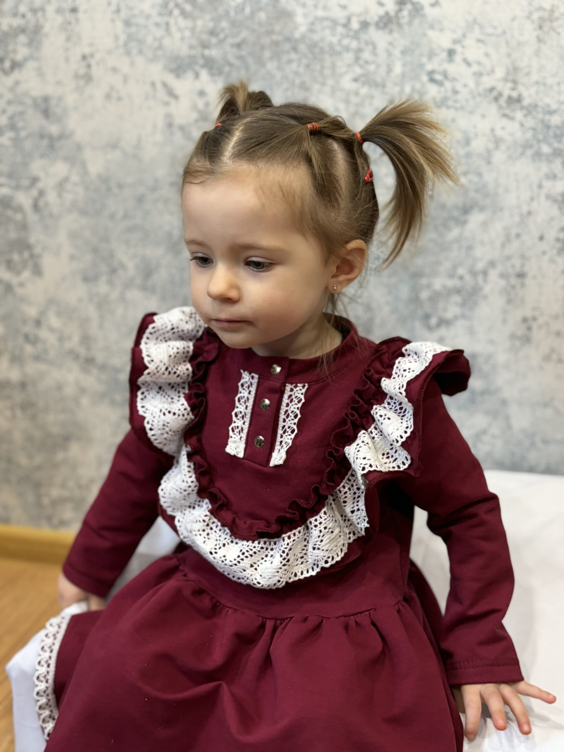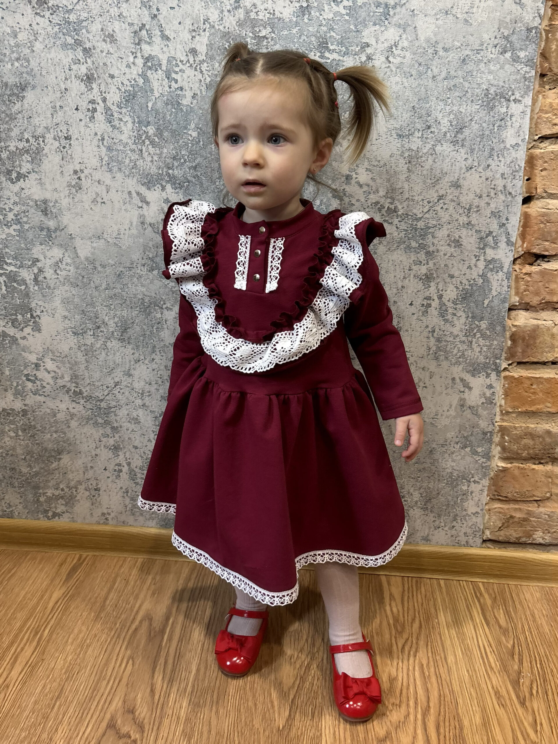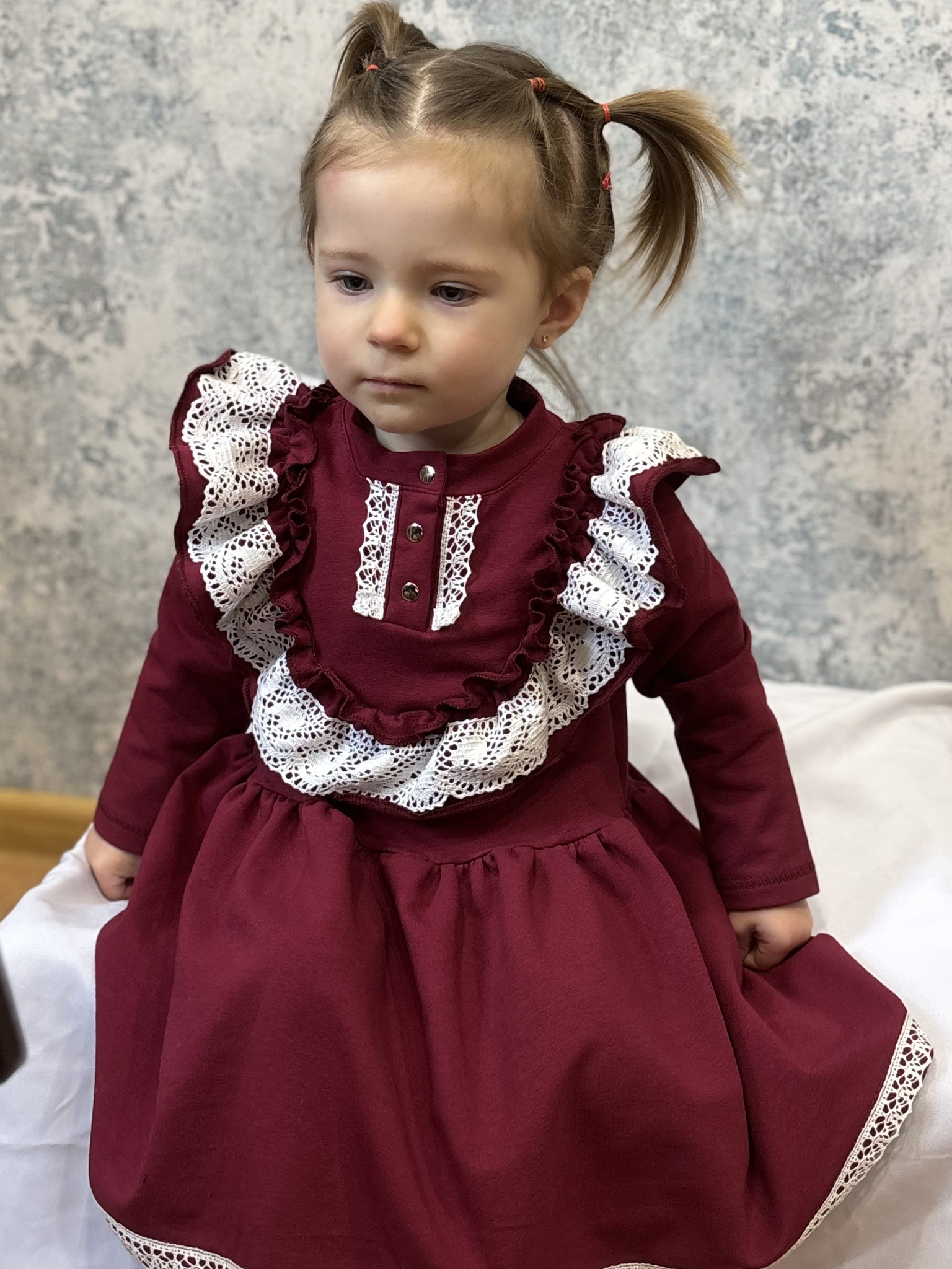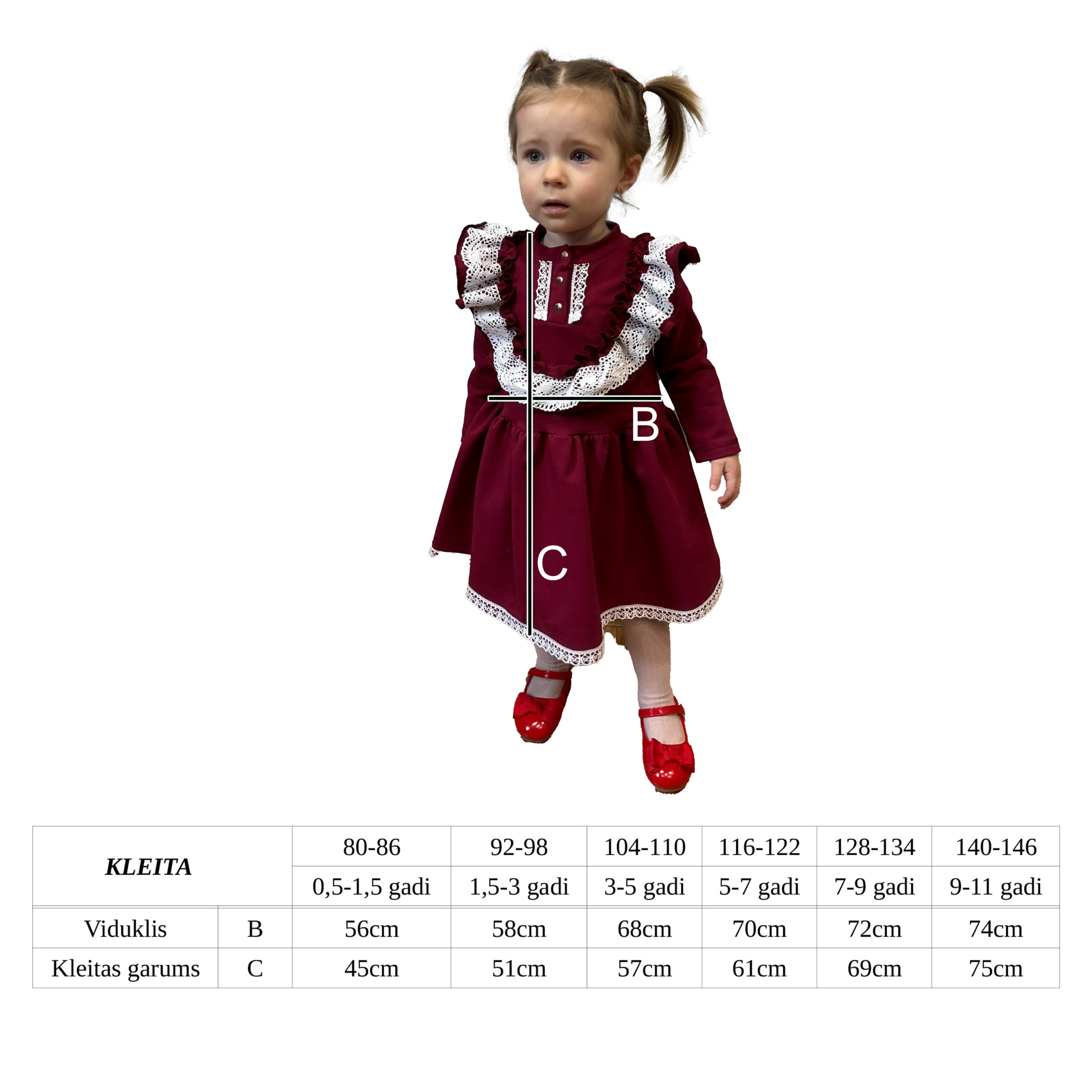 Skaista un ērta Latvijas stila bordo kleita ar garām piedurknēm, kas iedvesmota no Latvijas karoga krāsām. Izgatavota no mīksta trikotāžas auduma, tā nodrošina komfortu gan ikdienas gaitām, gan svētku reizēm. Eleganta un patriotiska izvēle mazajām Latvijas patriotēm!
